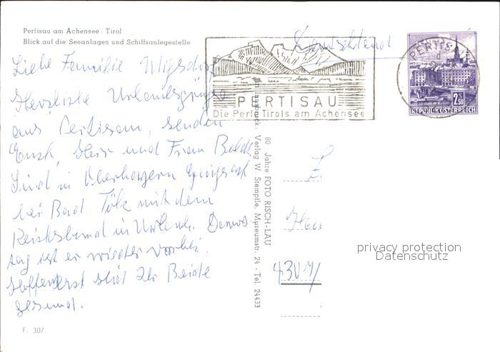 72535887 alte Postkarte Pertisau Achensee Blick auf die Seeanlagen und Schiffsanlegestelle postalisch gelaufen Erhaltung siehe scans [FriedD77 kt118box] KatCode: 11390335070907