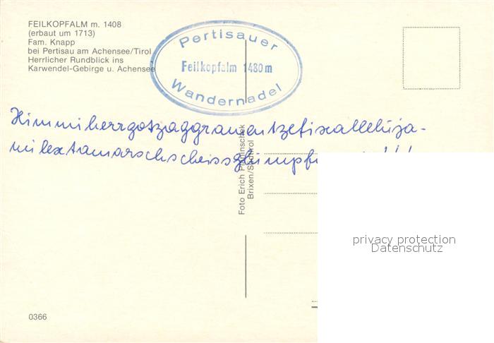 73143692 Pertisau Achensee Feilkopfalm Huettenabend Lastenaufzug Rundblick ins Karwendelgebirge postalisch nicht gelaufen Erhaltung siehe scans [FriedD77] KatCode: 11390335070907
