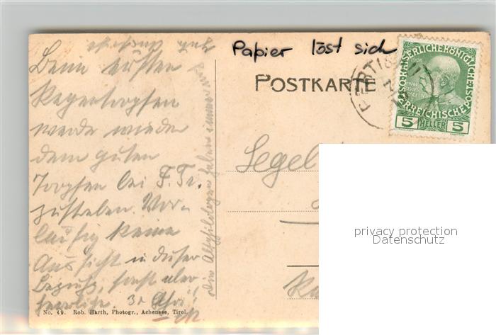 43261950 alte Postkarte Pertisau Achensee Gasthaus zum Pfandler gegen Unuetz postalisch gelaufen Erhaltung siehe scans [LiesaD40] KatCode: 11390335070907