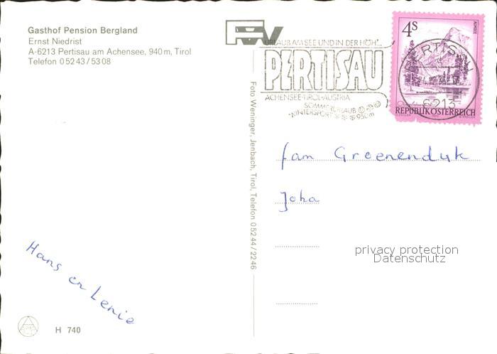 71981916 alte Postkarte Pertisau Achensee Gasthof Pension Bergland postalisch gelaufen Erhaltung siehe scans KatCode: 11390335070907
