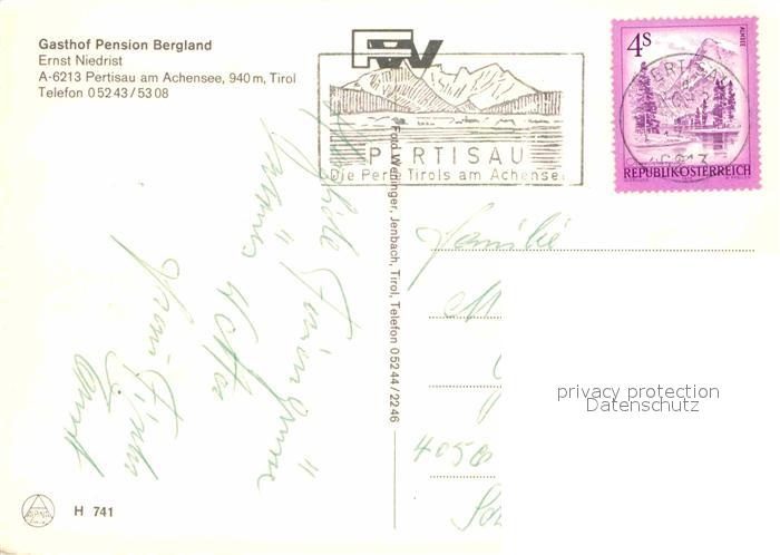 42621179 alte Postkarte Pertisau Achensee Gasthof Pension Bergland Skigruppe postalisch gelaufen Erhaltung siehe scans [WerneD78] KatCode: 11390335070907
