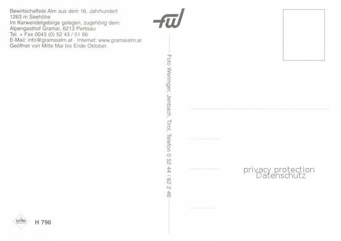 72674007 Pertisau Achensee Gramai Alm postalisch nicht gelaufen Erhaltung siehe scans [WerneD78] KatCode: 11390335070907