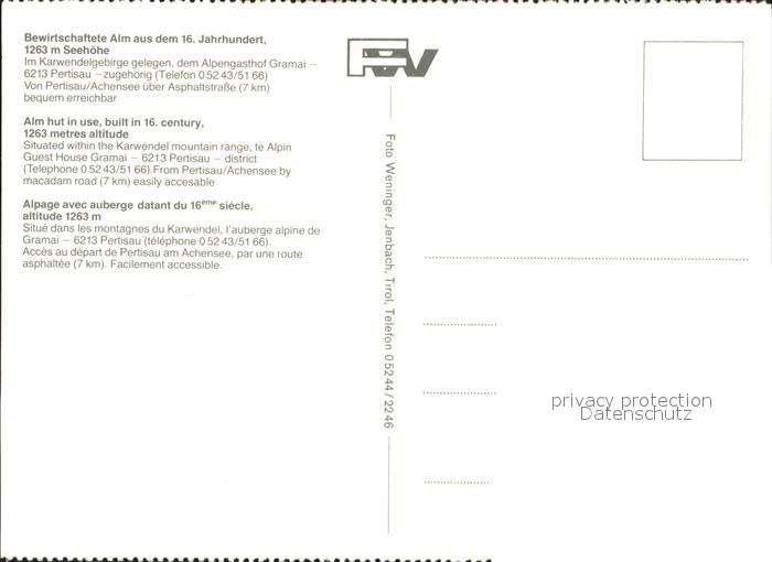 72256956 Pertisau Achensee Gramai Alm aus 16. Jhdt. Kuehe Karwendelgebirge postalisch nicht gelaufen Erhaltung siehe scans KatCode: 11390335070907