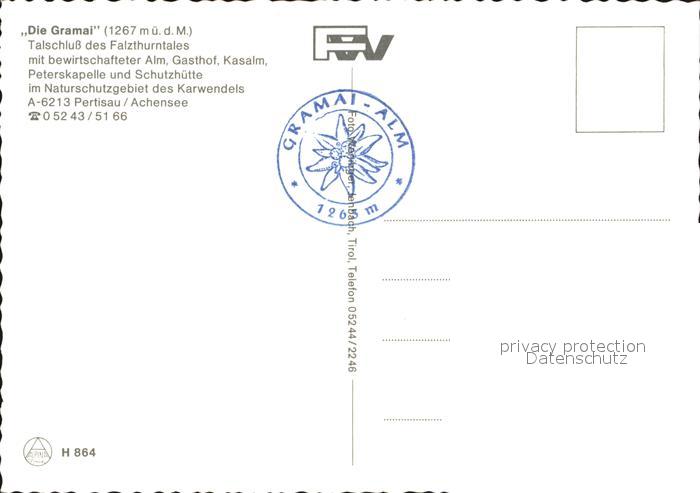72470145 Pertisau Achensee Gramai Alm Schutzhuette Hochleger Falzthurntal Kapelle Naturschutzgebiet Karwendel postalisch nicht gelaufen Erhaltung siehe scans KatCode: 11390335070907