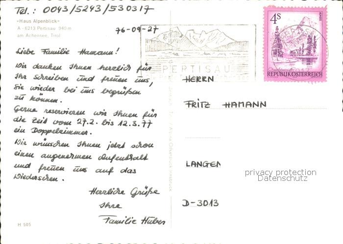 72496176 alte Postkarte Pertisau Achensee Haus Alpenblick postalisch gelaufen Erhaltung siehe scans KatCode: 11390335070907