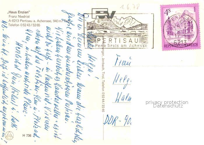 72786070 alte Postkarte Pertisau Achensee Hotel Pension Haus Enzian Alpen postalisch gelaufen Erhaltung siehe scans [FriedD77] KatCode: 11390335070907