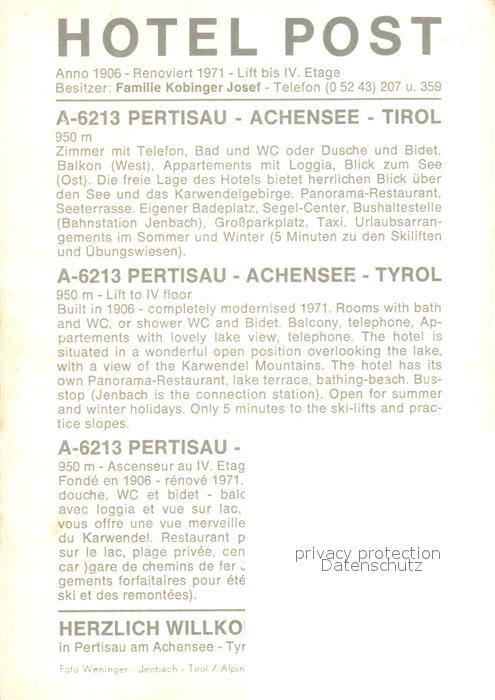 73720230 Pertisau Achensee Hotel Post postalisch nicht gelaufen Werbekarte (keine Postkarte) Erhaltung siehe scans [WerneD78] KatCode: 11390335070907