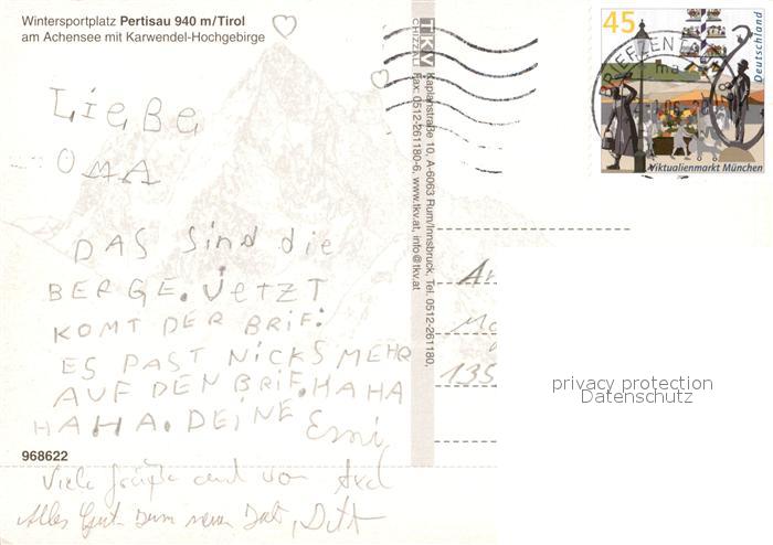 73575310 alte Postkarte Pertisau Achensee Panorama Blick zum Karwendel Hochgebirge im Winter postalisch gelaufen Erhaltung siehe scans [FriedD77] KatCode: 11390335070907
