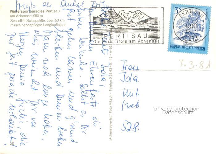 73147254 alte Postkarte Pertisau Achensee Panorama Wintersportplatz Alpen postalisch gelaufen Erhaltung siehe scans [FriedD77] KatCode: 11390335070907