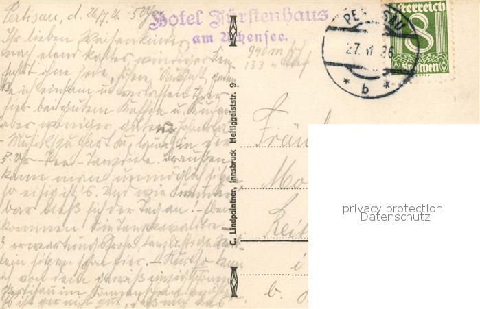 43066094 alte Postkarte Pertisau Achensee Partie am See postalisch gelaufen Erhaltung siehe scans [LiesaD40] KatCode: 11390335070907