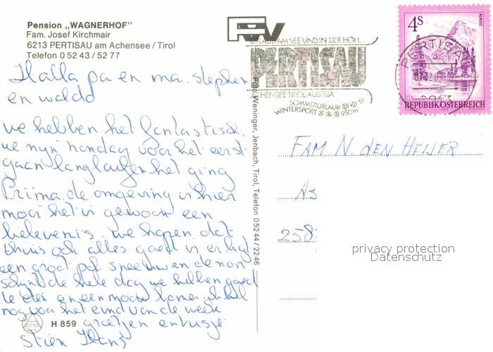 72639018 alte Postkarte Pertisau Achensee Pension Wagnerhof Ski postalisch gelaufen Erhaltung siehe scans [NatalD47] KatCode: 11390335070907