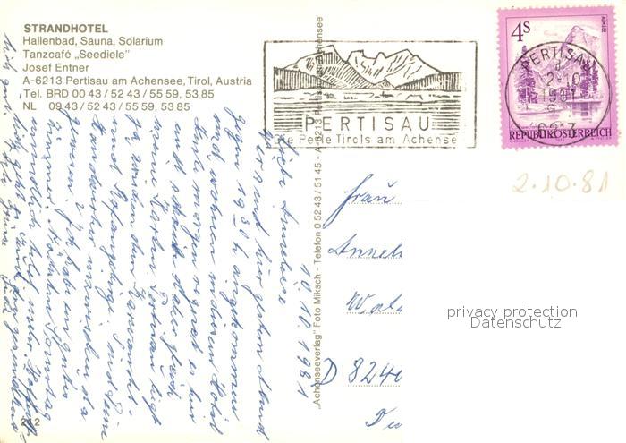 73152533 alte Postkarte Pertisau Achensee Strandhotel Alpen postalisch gelaufen Erhaltung siehe scans [FriedD77] KatCode: 11390335070907