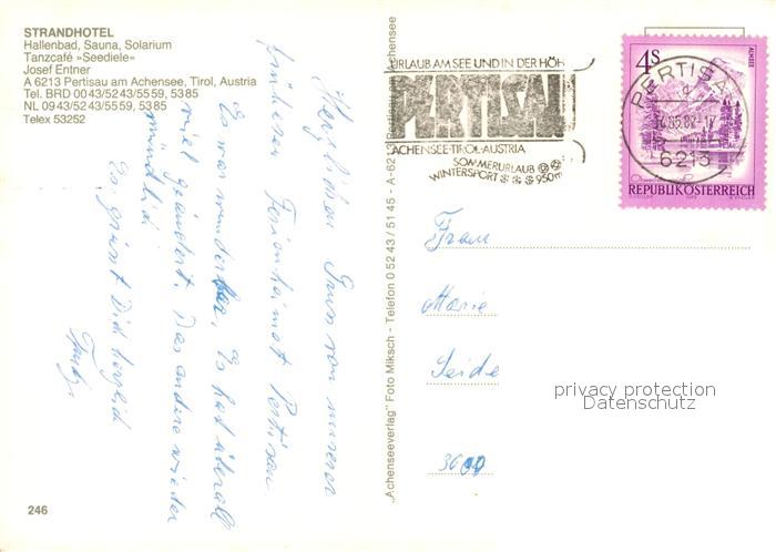 73296533 alte Postkarte Pertisau Achensee Strandhotel Hallenbad Tanzcafe Seediele Solarium postalisch gelaufen Erhaltung siehe scans [WerneD78] KatCode: 11390335070907