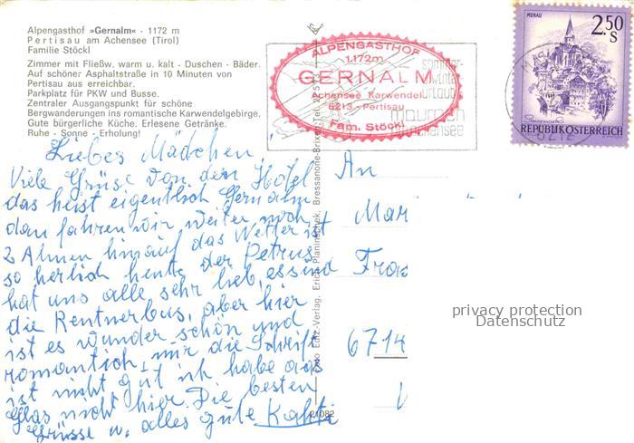 74152558 alte Postkarte Pertisau Achensee Tirol AT Alpengathof Gerneralm postalisch gelaufen Erhaltung siehe scans [WerneD78] KatCode: 11390335070907