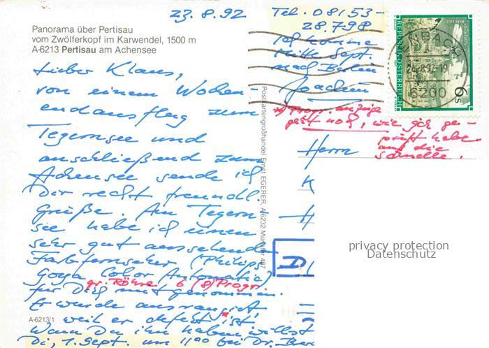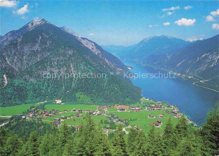 Pertisau Achensee Tirol AT Blick vom Zwoelferkopf auf Achensee postalisch gelaufen Erhaltung siehe scans [WerneD78] alte Postkarte Wern Katcode 11390335070907