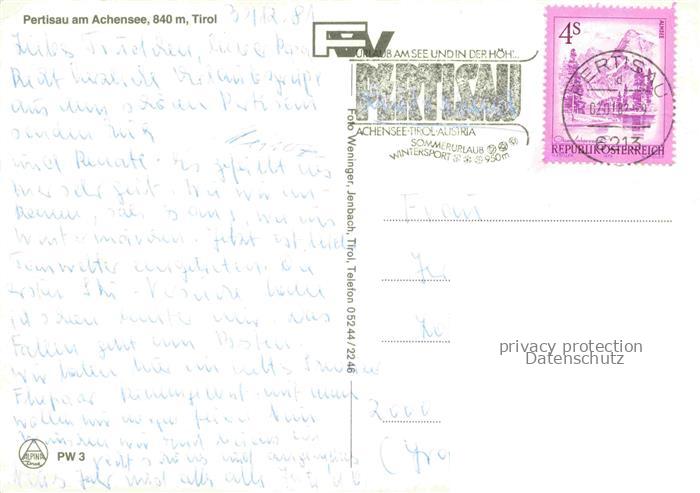 74153121 alte Postkarte Pertisau Achensee Tirol AT Seepanorama Hirschfuetterung Strassenpartie im Winter postalisch gelaufen Erhaltung siehe scans [WerneD78] KatCode: 11390335070907