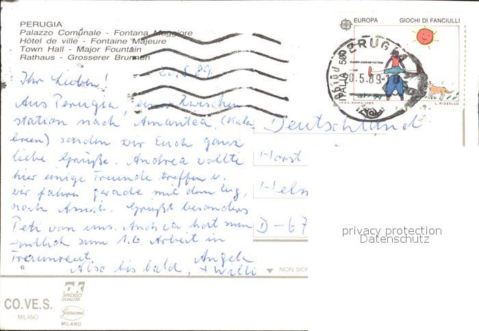 old postcard Perugia Palazzo Comunale Fontana Maggiore Rathaus Brunnen postalisch gelaufen Erhaltung siehe scans