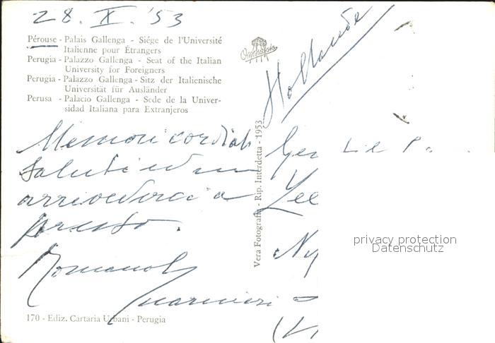 old postcard Perugia Palazzo Gallenga della Universitae per gli Stranieri postalisch gelaufen Erhaltung siehe scans