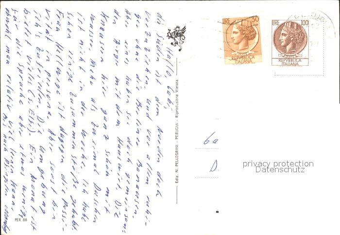 old postcard Perugia Piazza IV. Novembre Fliegeraufnahme Dom postalisch gelaufen Erhaltung siehe scans