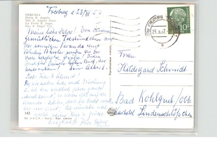 old postcard Perugia Porta San Angelo Engel Tor postalisch gelaufen