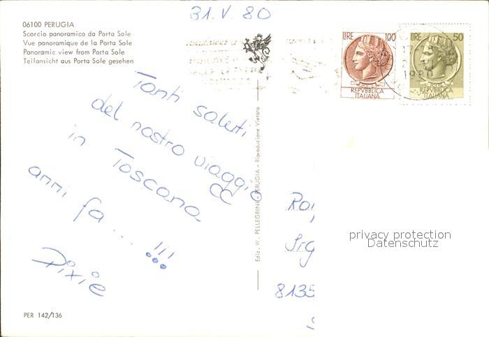 old postcard Perugia Scorcio panoramica da Porta Sole Chiesa Kirche postalisch gelaufen Erhaltung siehe scans