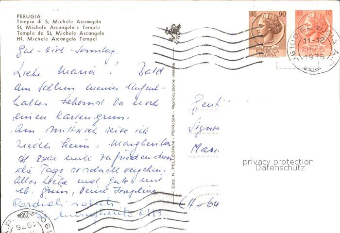 old postcard Perugia Tempio di S. Michele Arcangelo postalisch gelaufen Erhaltung siehe scans