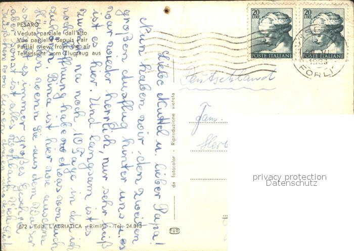 old postcard Pesaro Fliegeraufnahme postalisch gelaufen Erhaltung siehe scans