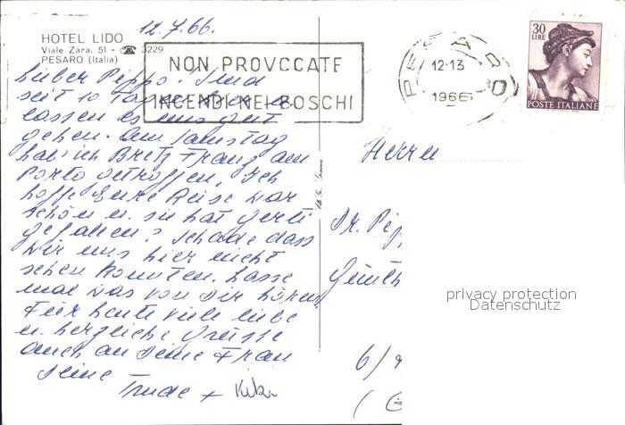 old postcard Pesaro Hotel Lido Segelboot postalisch gelaufen Erhaltung siehe scans