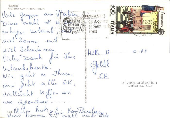 old postcard Pesaro Riviera Adriatica Citta d Arte postalisch gelaufen Erhaltung siehe scans