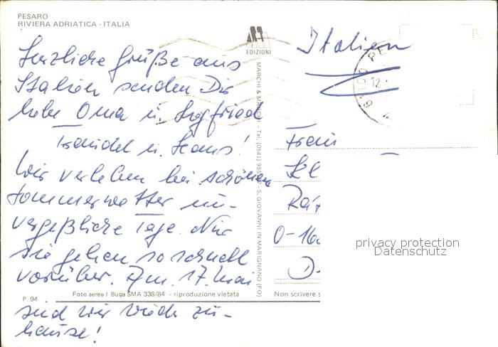 old postcard Pesaro Riviera Adriatica Fliegeraufnahme postalisch gelaufen Erhaltung siehe scans