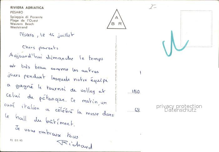 Pesaro Riviera adriatica spiaggia di ponente Weststrand postalisch nicht gelaufen Erhaltung siehe scans