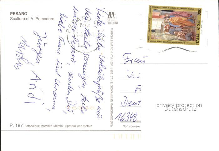 old postcard Pesaro Scultura A. Pomodoro postalisch gelaufen Erhaltung siehe scans