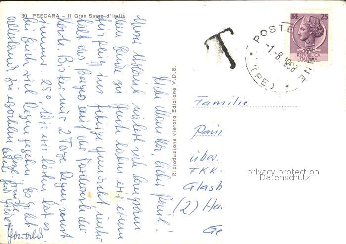 old postcard Pescara Gran Sasso d`Italia postalisch gelaufen Erhaltung siehe scans