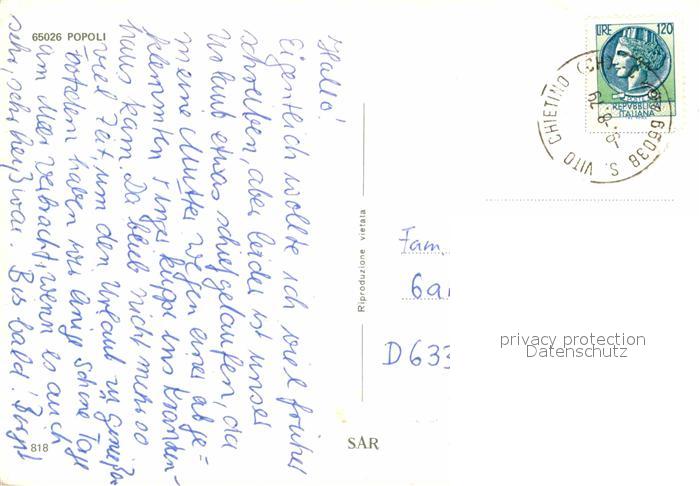 old postcard Pescara Popoli Kirche Burg FlussBrunnen postalisch gelaufen Erhaltung siehe scans [AndreD76]