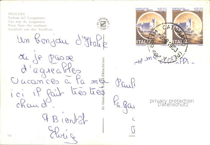 old postcard Pescara Veduta del Lungomare Spaggia postalisch gelaufen Erhaltung siehe scans