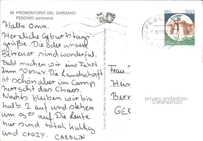 old postcard Peschici Fliegeraufnahme Promontorio del Gargano postalisch gelaufen Erhaltung siehe scans