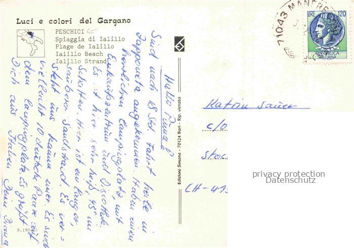 74043227 old postcard Peschici Gargano IT Spiaggia di Ialillo postalisch gelaufen Erhaltung siehe scans [WerneD78] KatCode: 11240