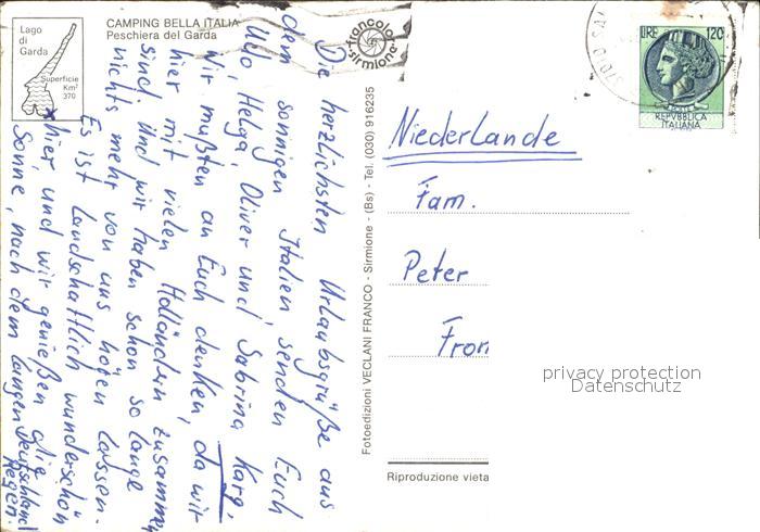 old postcard Peschiera del Garda Camping Bella Italia postalisch gelaufen Erhaltung siehe scans