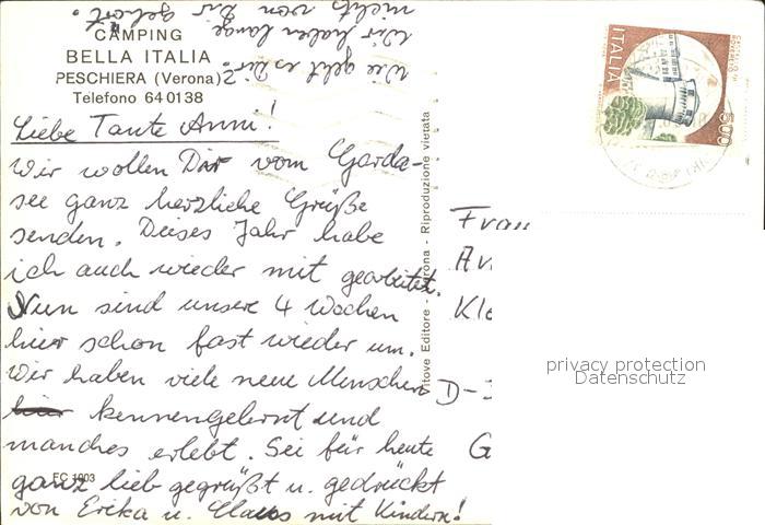 old postcard Peschiera del Garda Camping Bella Italia postalisch gelaufen Erhaltung siehe scans
