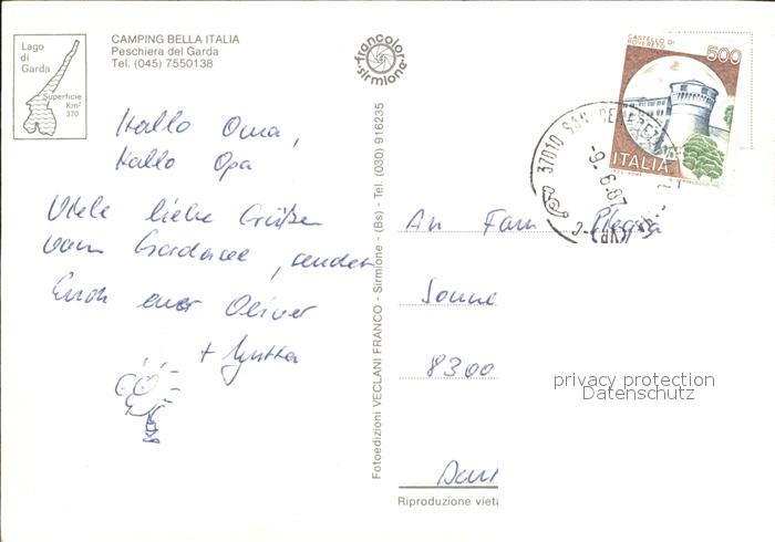 old postcard Peschiera del Garda Camping Bella Italia postalisch gelaufen Erhaltung siehe scans