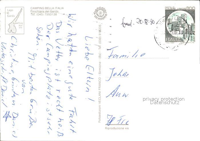 old postcard Peschiera del Garda Camping Bella Italia postalisch gelaufen Erhaltung siehe scans