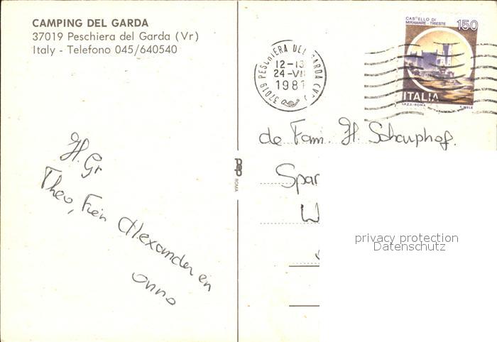 old postcard Peschiera del Garda Camping del Garda Swimming Pool postalisch gelaufen Erhaltung siehe scans