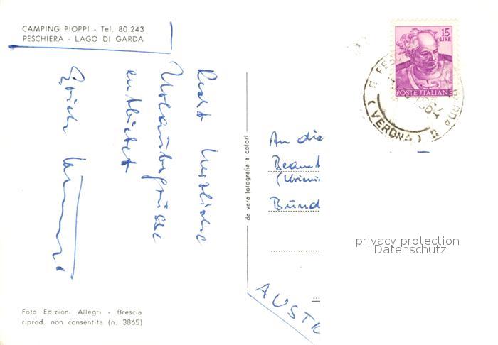 13153764 Peschiera del Garda Camping Pioppi See postalisch gelaufen Erhaltung siehe scans [KathaD81] old postcard Kath Katcode