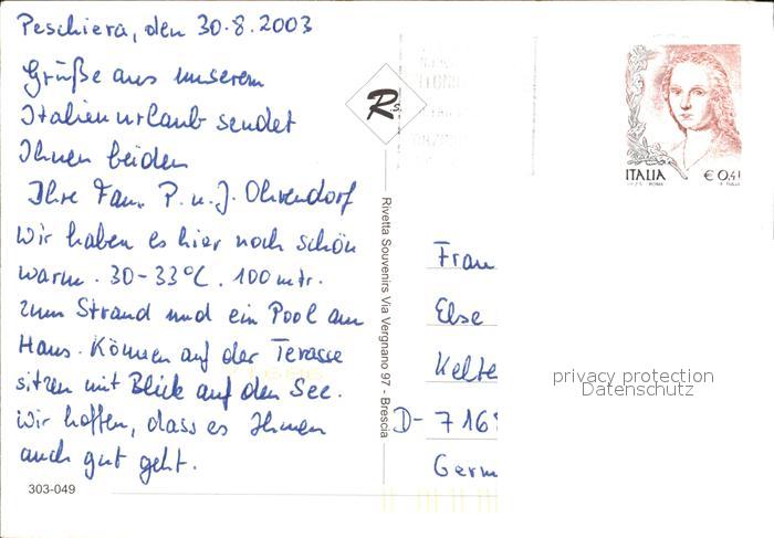 old postcard Peschiera del Garda Dampfer Kueste Uferpromenade Denkmal Bruecke Gardasee postalisch gelaufen Erhaltung siehe scans
