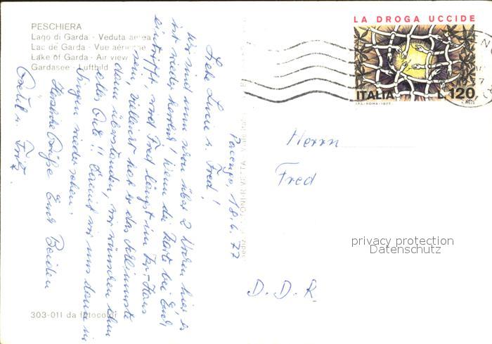 old postcard Peschiera del Garda Fliegeraufnahme postalisch gelaufen Erhaltung siehe scans