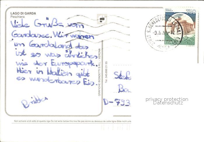 old postcard Peschiera del Garda Lago di Garda Luftbildaufnahme postalisch gelaufen Erhaltung siehe scans