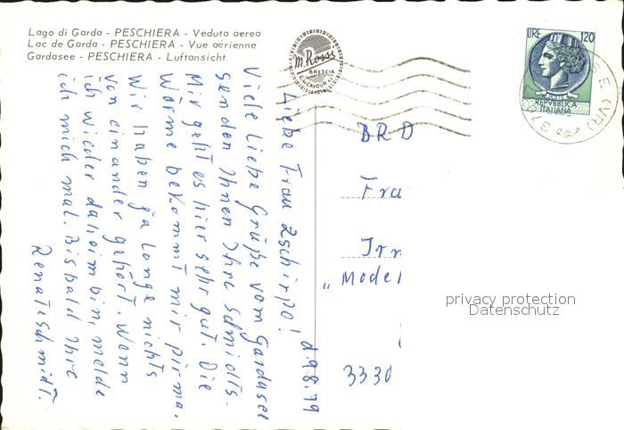 old postcard Peschiera del Garda Lago di Garda Veduta aerea postalisch gelaufen Erhaltung siehe scans