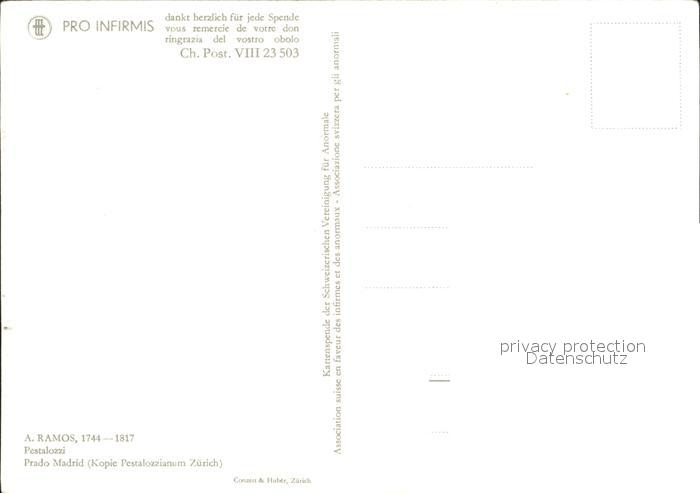 Pestalozzi Heinrich Kuenstlerkarte A. Ramos Pro-Infirmis Spendenkarte postalisch nicht gelaufen Erhaltung siehe scans