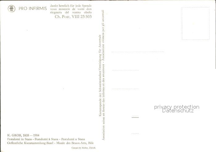 Pestalozzi Heinrich Stans Kuenstlerkarte K. Grob Pro-Infirmis Spendenkarte postalisch nicht gelaufen Erhaltung siehe scans