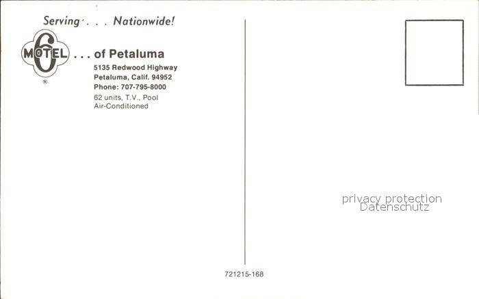 72253229 Petaluma Motel 6 postalisch nicht gelaufen Erhaltung siehe scans KatCode: 14140050000000